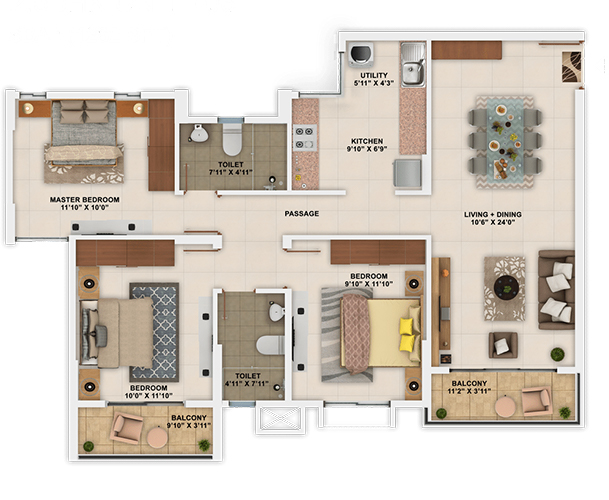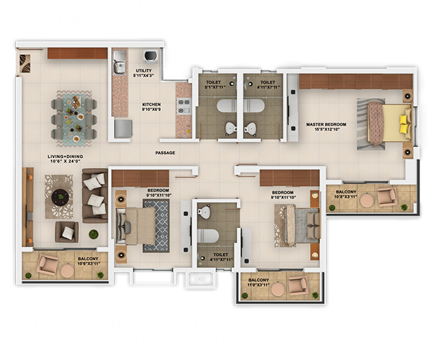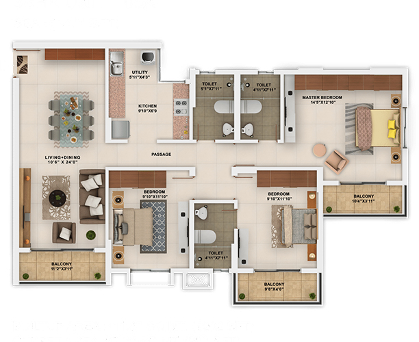 The astutely designed apartments range from 658 to 1498 sq. ft. and are augmented by common spaces that allow you to live life to the fullest. It offers a clubhouse for sports and another for recreation. The shopping complex in the premises and every conceivable convenience ensures that you won’t have to move far away from your self-contained dream home.