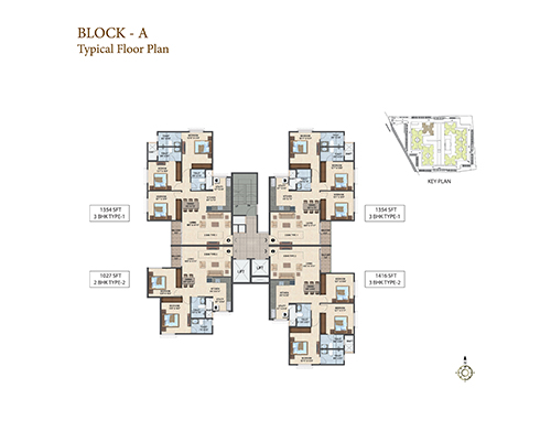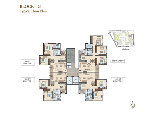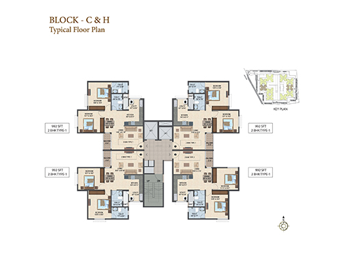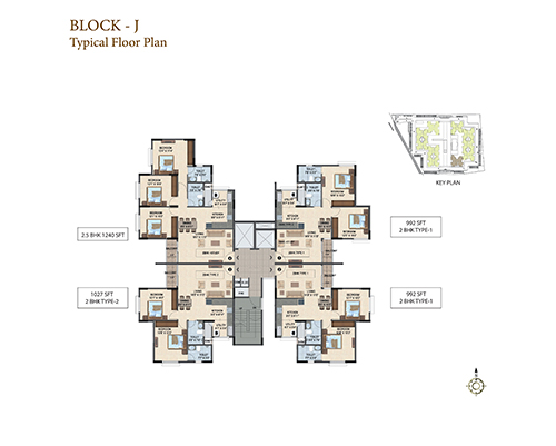 Sattva Laurel Heights offers 434 apartments with 4 flats on a floor along with 2 lifts and the best ever spatial planning. Available are 2 BHK apartments with floor space of 992 sq. ft. and 1027 sq. ft. It has an excellent city view & courtyard view from the balcony. The amenities here are premium and promises its residents a well- rounded lifestyle. It has well-planned outdoors with aesthetically designed spaces for recreation and children’s play, ample parking spaces that also include two basement floors and surface car parking.